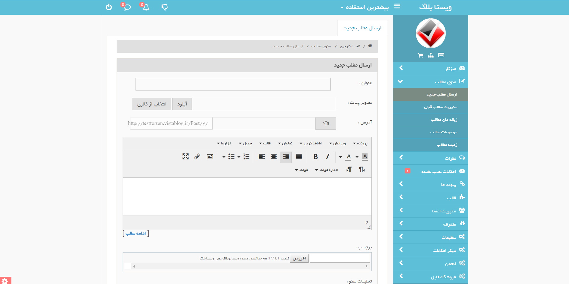 و از امکانات بی نظیر دیگر مانند ارسال پست در آینده ،سایت مپ و ویراشگر پیشرفته